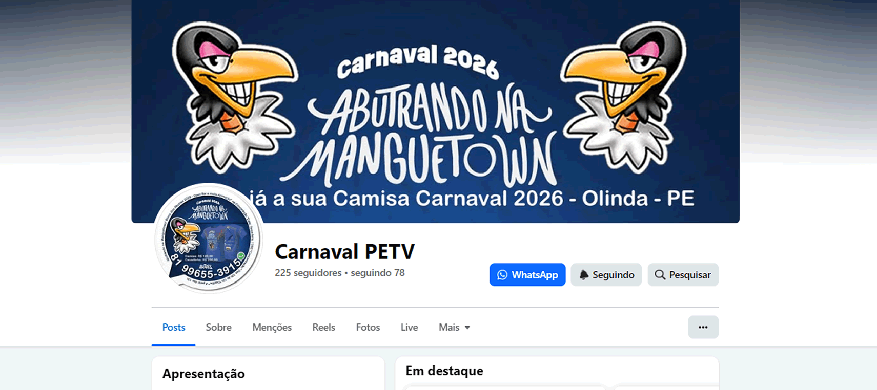 Anúncio do seu Post na Capa Topo da Página e do Grupo, com a Foto do Perfil do Guia, + 01 Post na 1ª Postagem e no 1º Destaque no Guia do Seguimento PETV que você escolher ser Visto, por um Período de 30 Dias.