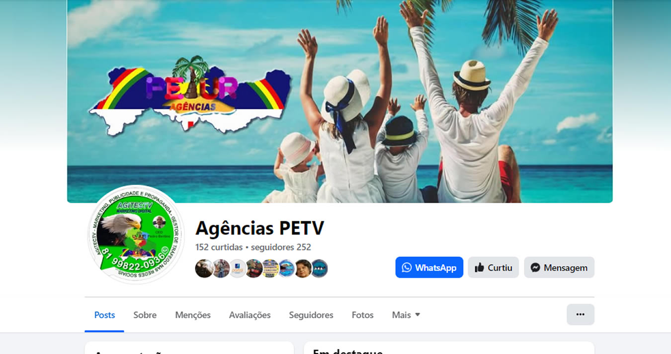 Anúncio do seu Post na Capa Topo da Página e do Grupo, com a Foto do Perfil do Guia Agências PETV, + 01 Post na 1ª Postagem e no 1º Destaque no Guia do Seguimento PETV que você escolher ser Visto, por um Período de 30 Dias.