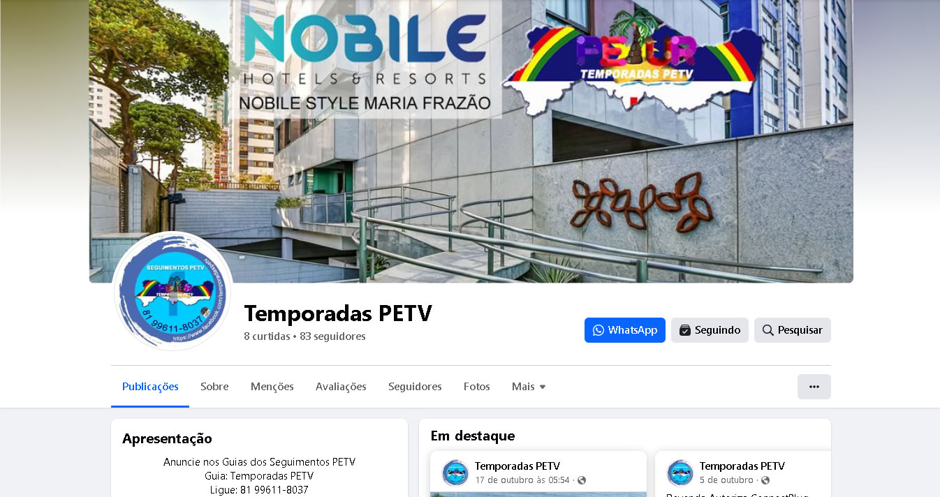 Anúncio do seu Post na Capa Topo da Página e do Grupo, com a Foto do Perfil do Guia, + 01 Post na 1ª Postagem e no 1º Destaque no Guia do Seguimento PETV que você escolher ser Visto, por um Período de 30 Dias.